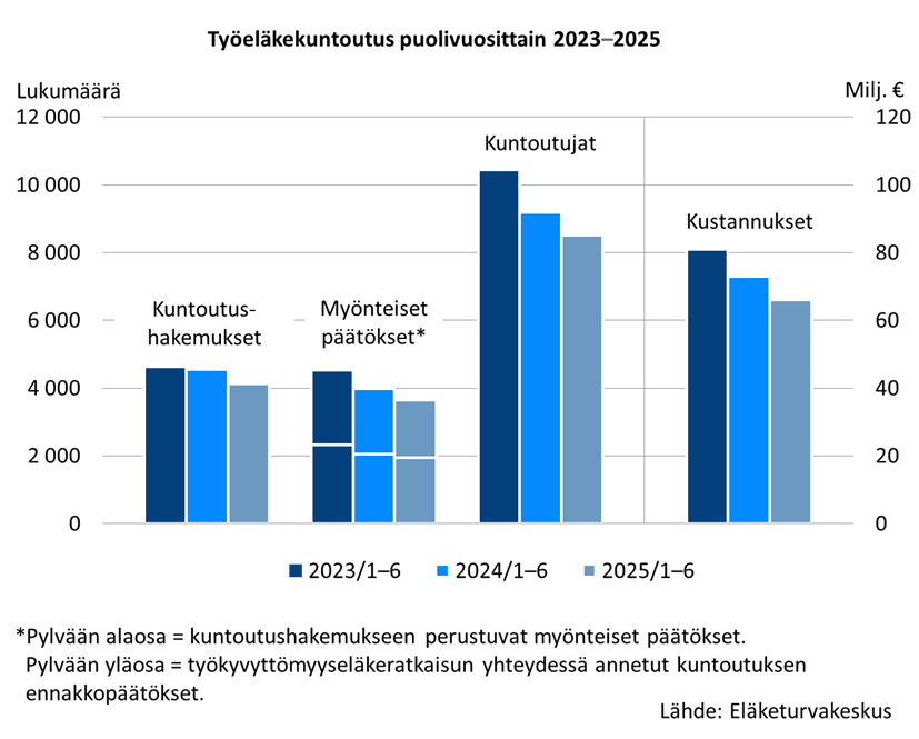 Vuoden 2025 puolivuotistilaston mukaan työeläkekuntoutujien määrä laski alkuvuonna ja kuntoutukseen haettiin aikaisempaa vähemmän.