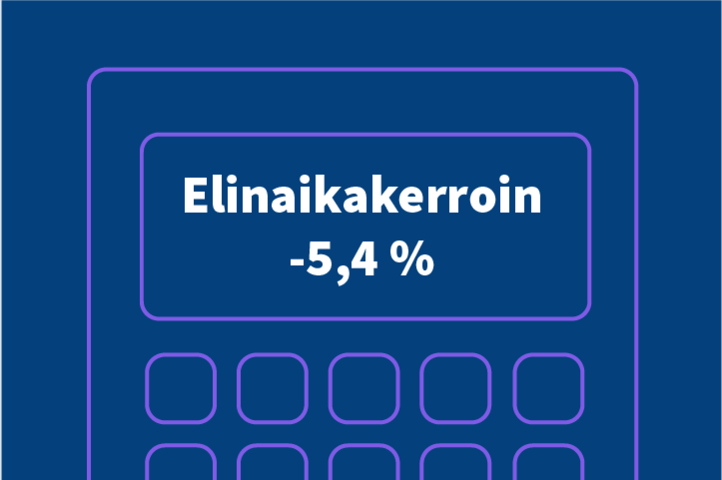 Elinaikakerroin pienentää eläkettäsi noin 5,4 prosenttia.