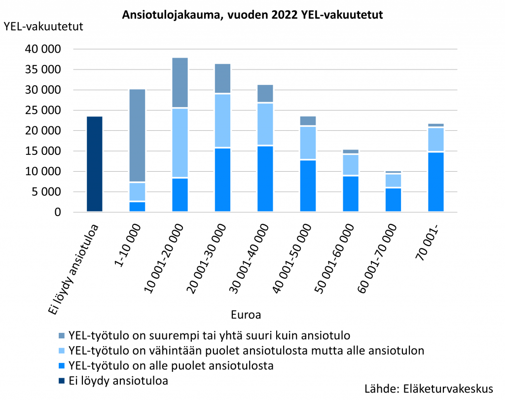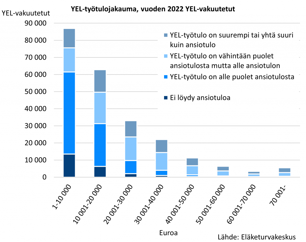 On tärkeää huomata, että nämä havainnot koskevat yhden vuoden (2022) YEL-työtuloja ja ansiotuloja.