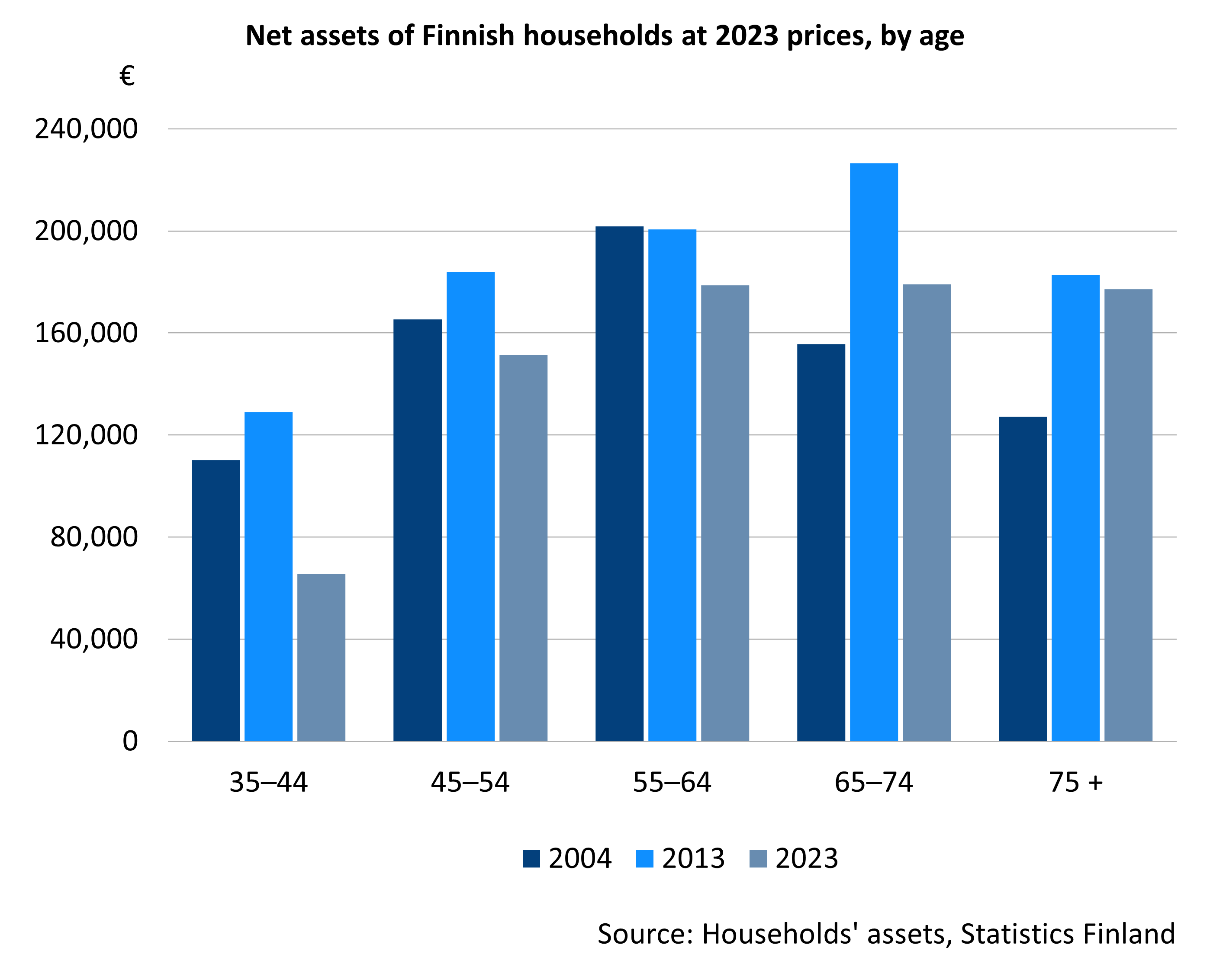 Graph’s “Net assets of Finnish households at 2023 prices, by age” data in accessible Excel file.