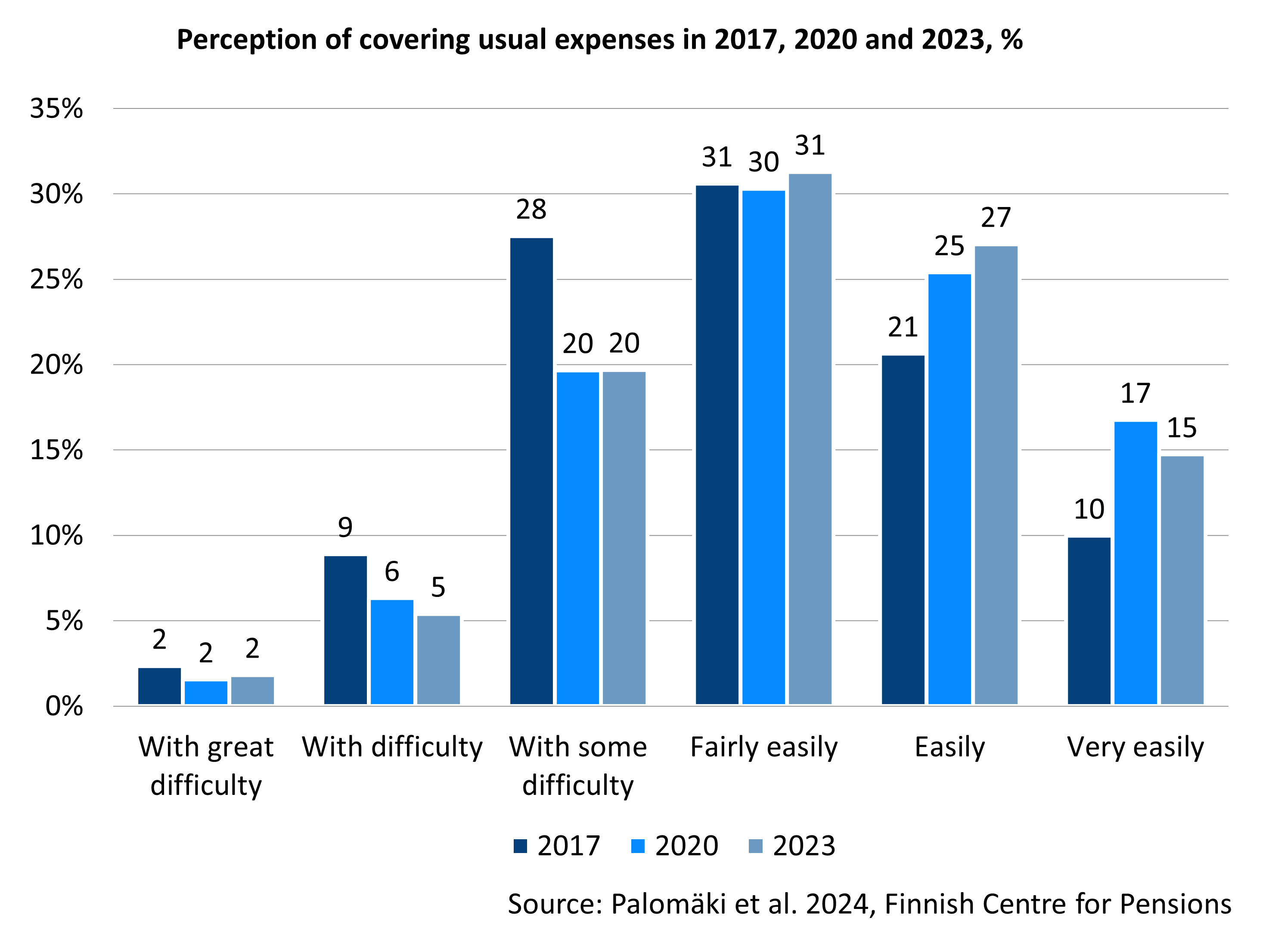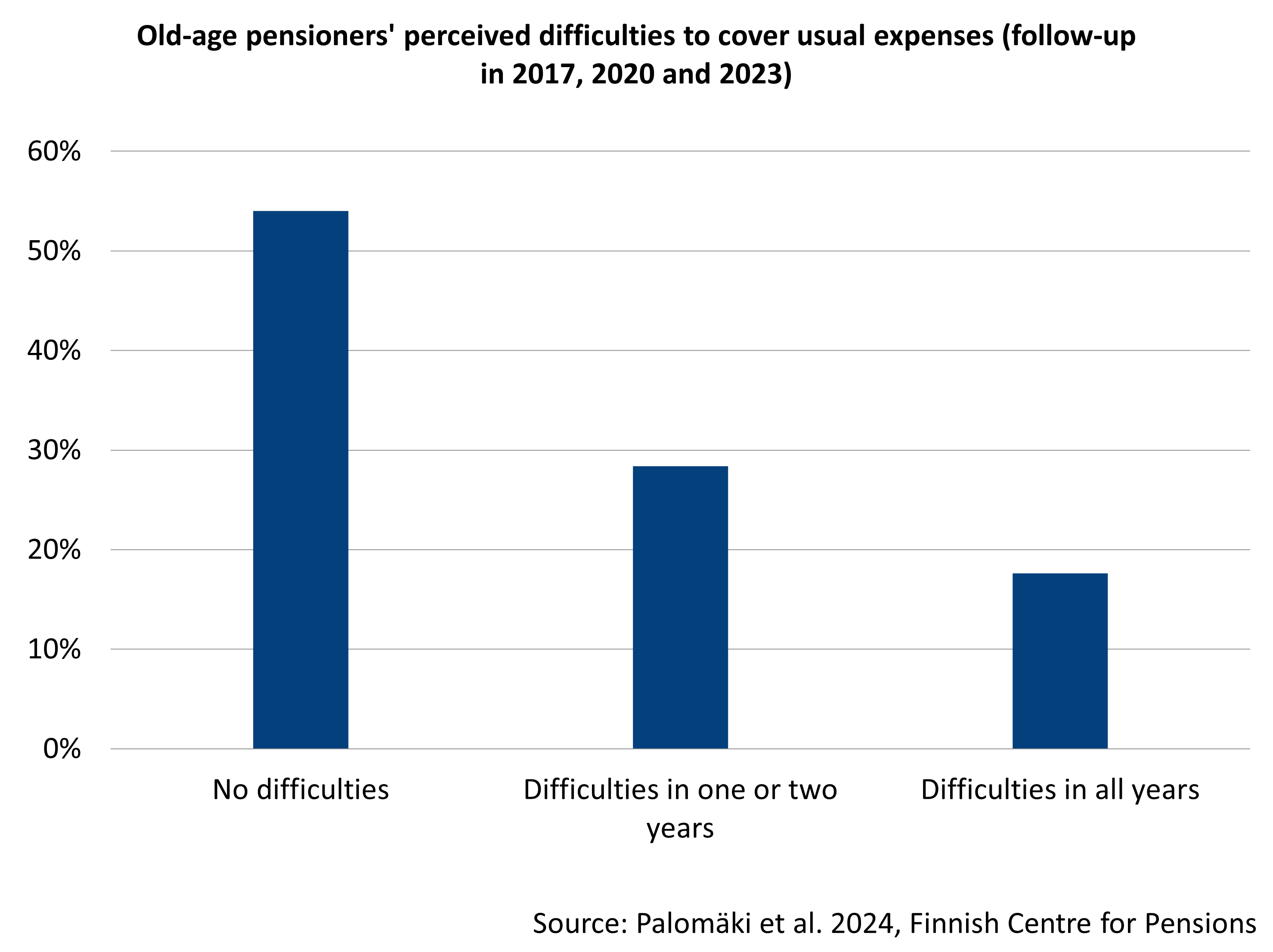 - Palomäki et al. 2024. Longitudinal study of perceived economic welfare among Finnish old-age pensioners in 2017, 2020 and 2023 (Summary in English; Julkari)