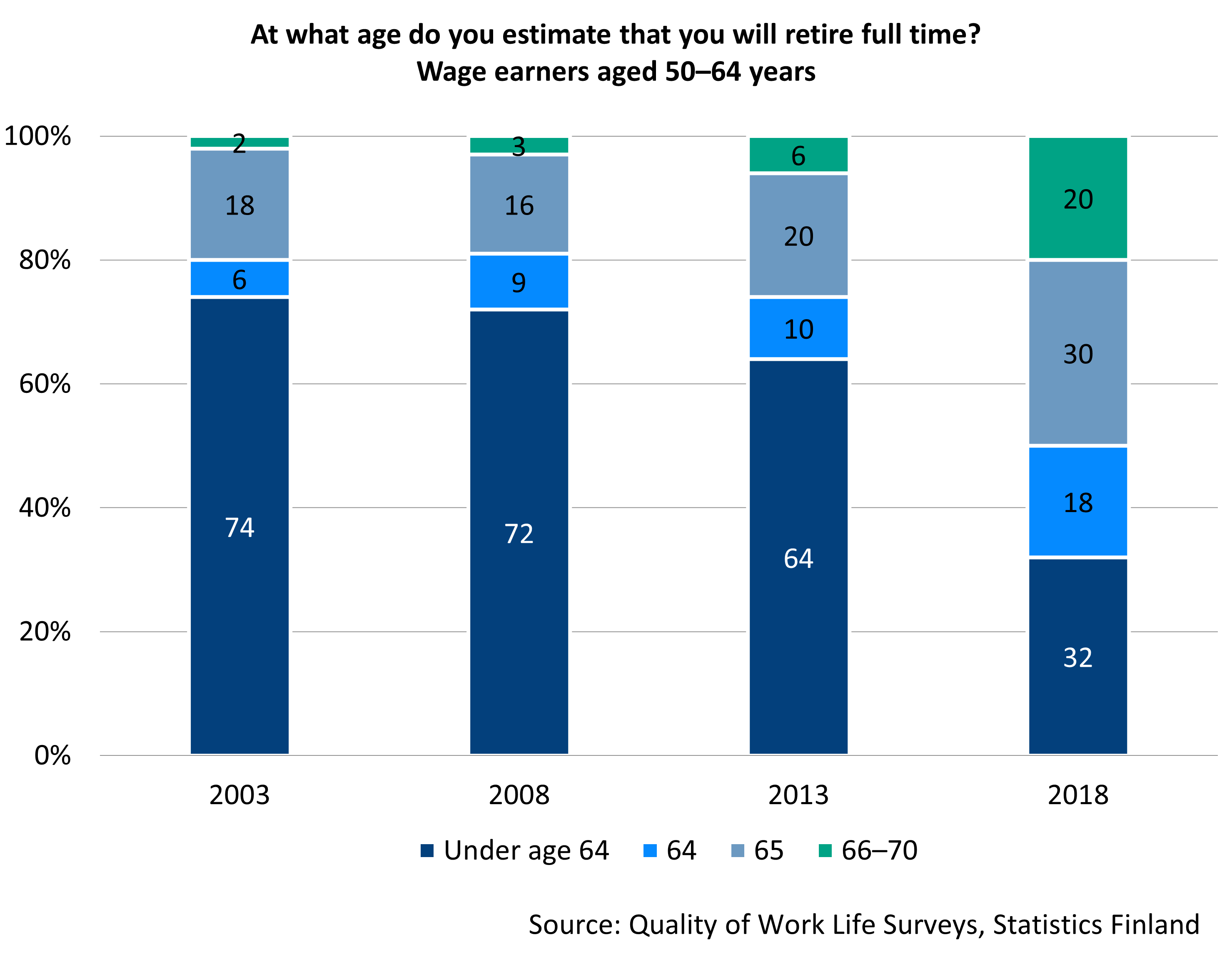 Finnish employers generally believe that 70 is too old to work. Although their views on the appropriate retirement age are higher than the European average, they are still lower than in other Nordic countries.