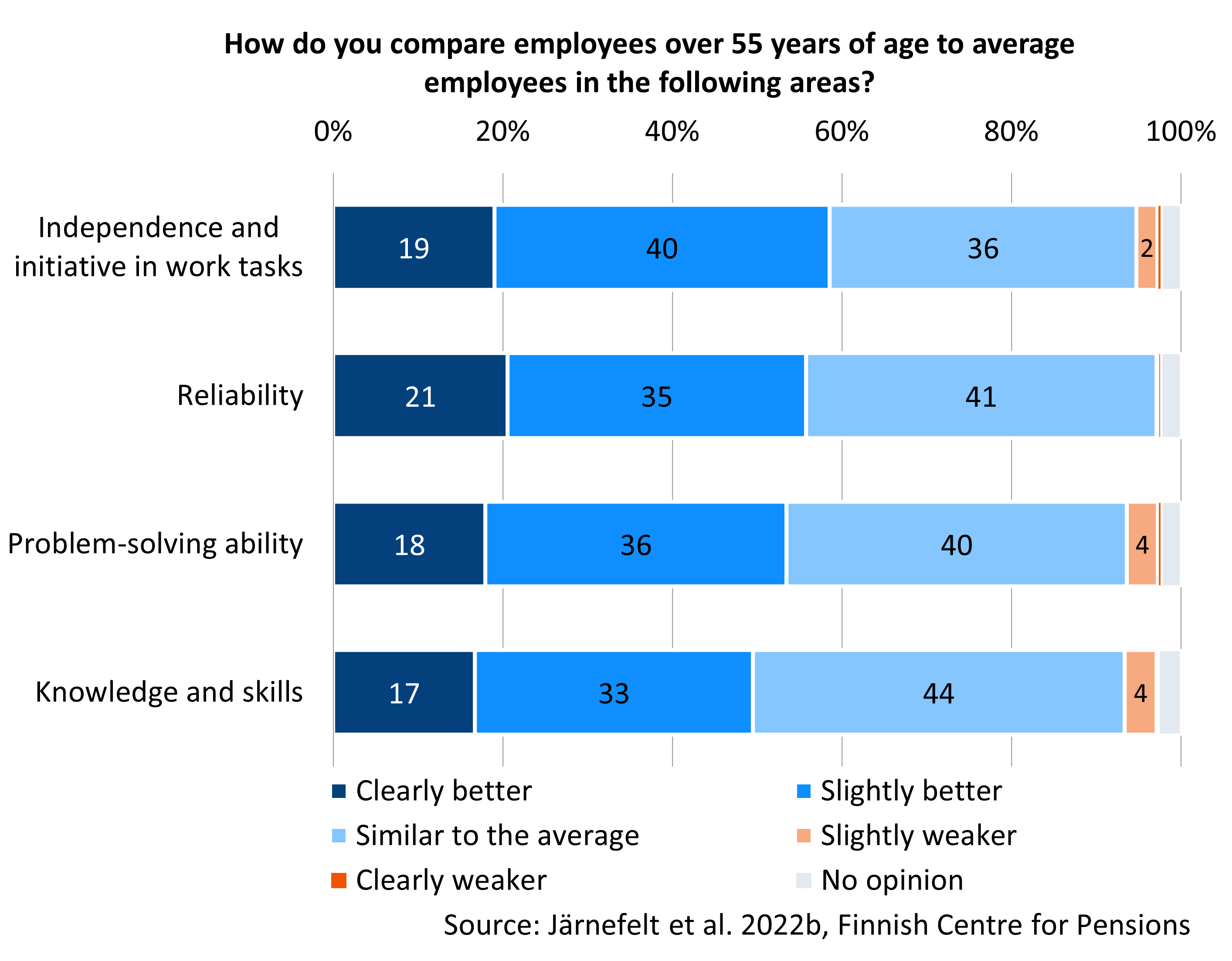 - Järnefelt et al. 2022. Employers’ perceptions of over-55-year-old employees, support for continued working and obstacles to hiring (Julkari)