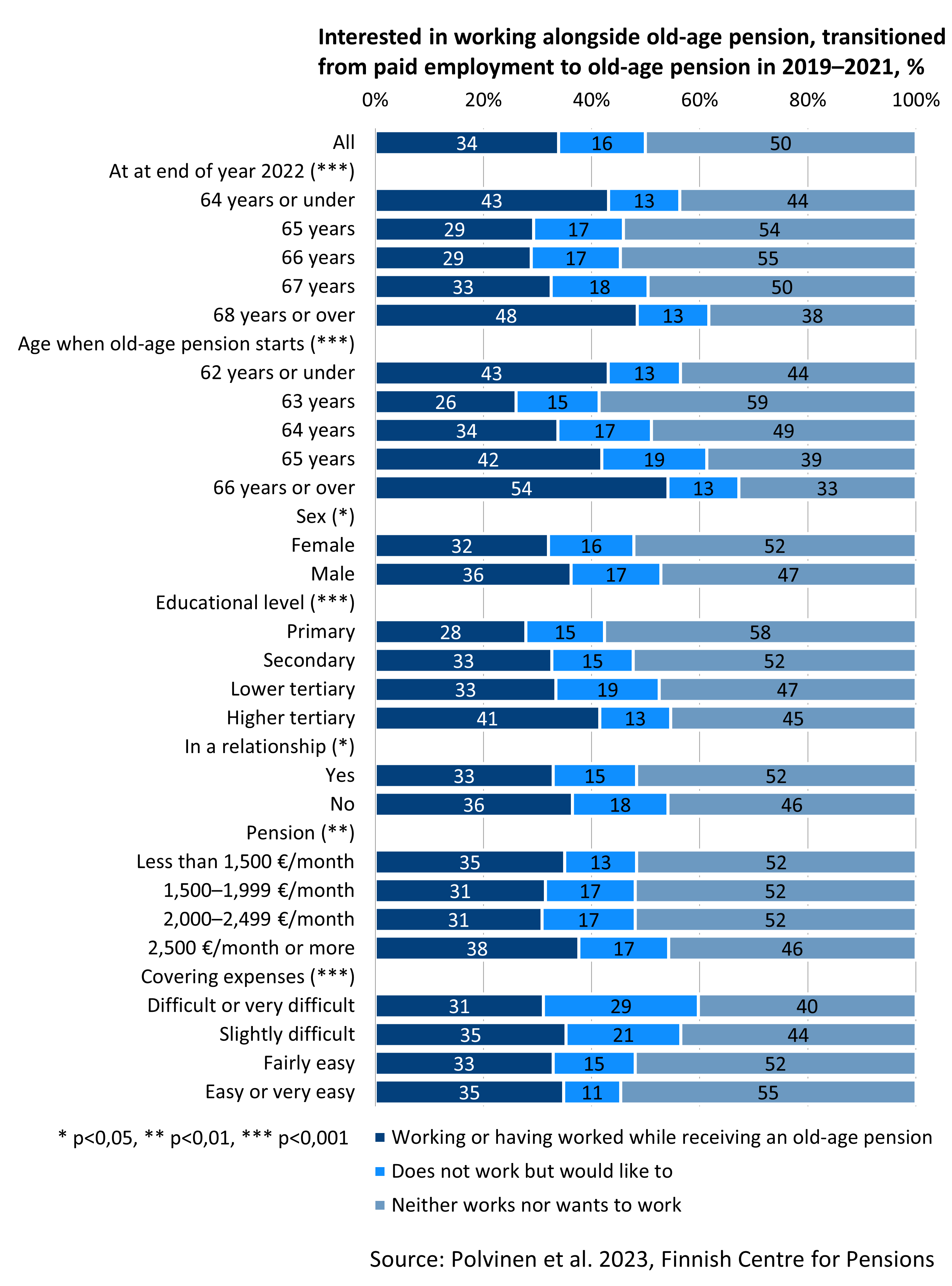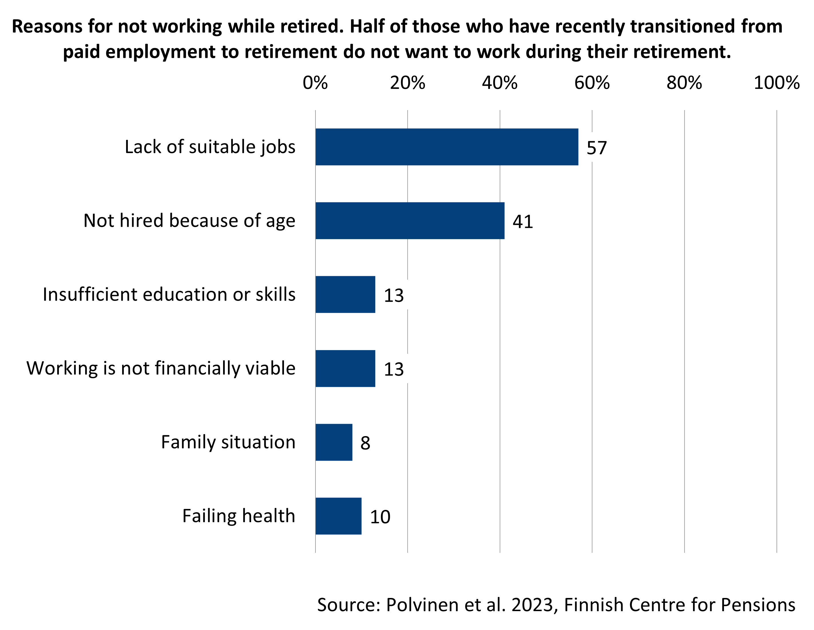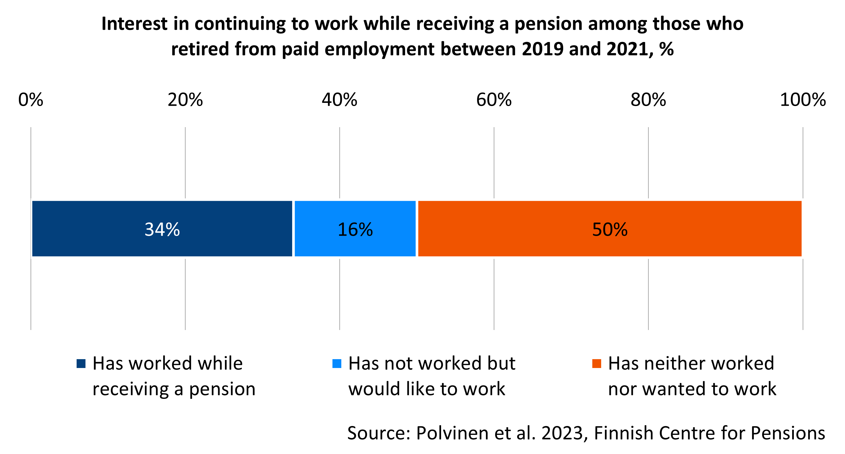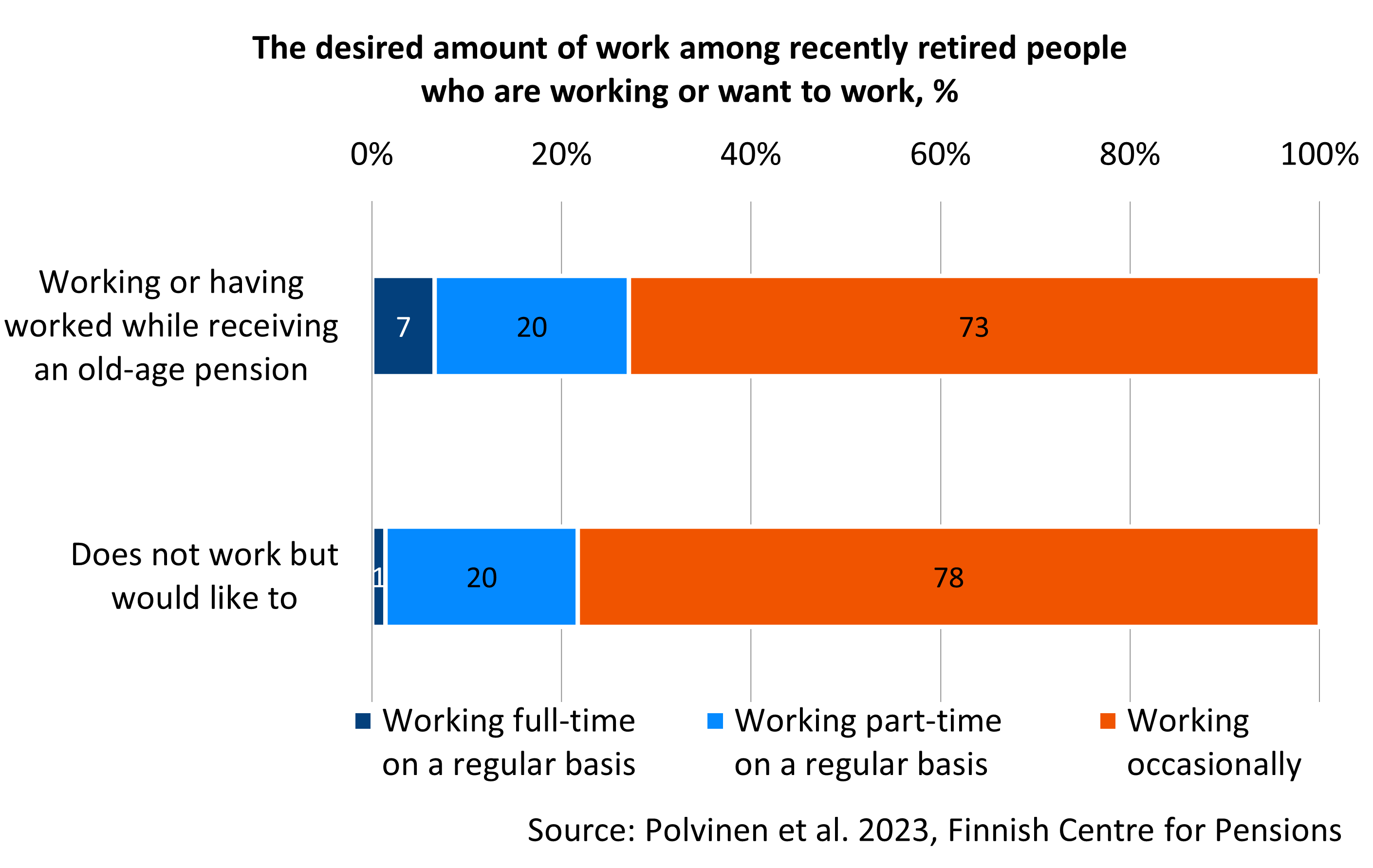 - Polvinen et al. 2023. Working in retirement. Survey of persons retiring from work on an old-age pension in 2019–2021. (Julkari)