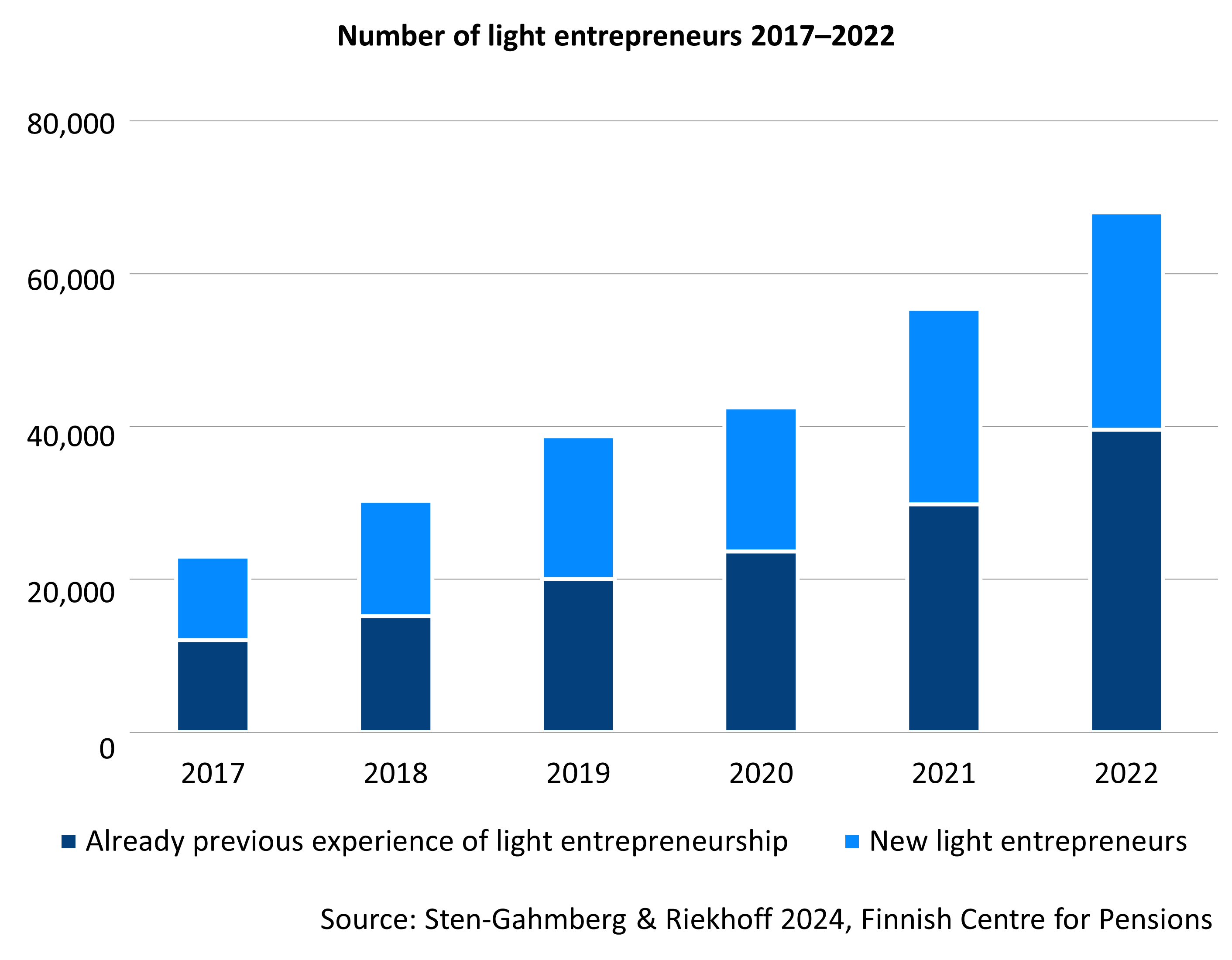 The number of light entrepreneurs has grown rapidly in recent years. In 2017, around 23,000 light entrepreneurs were earning an income through a billing service company, but by 2022 this number had almost tripled to 68,000.