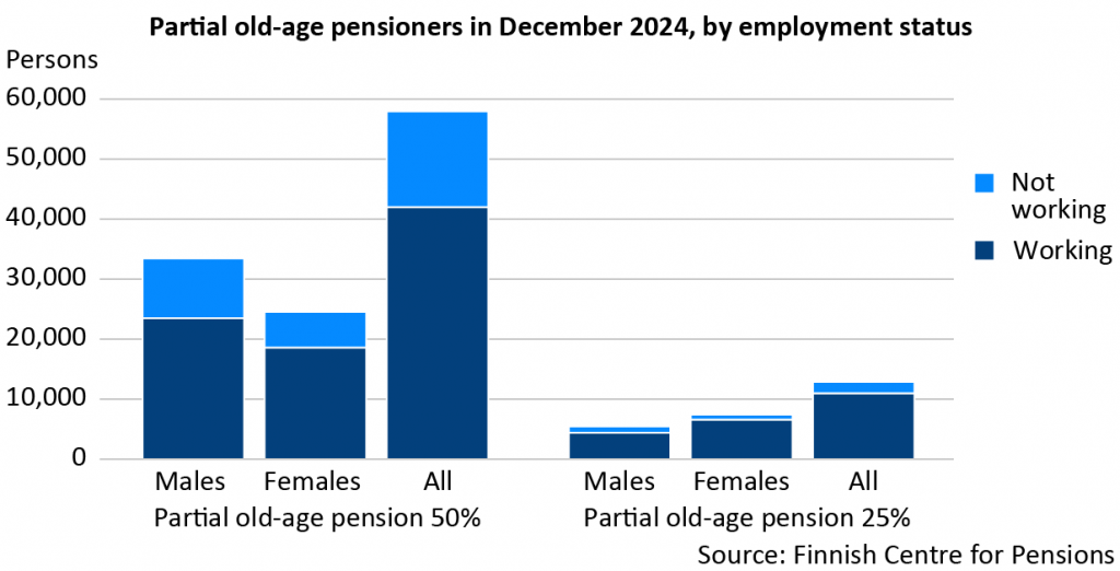 Three in four persons receiving a partial old-age pension worked at year-end 2024. A majority (86%) of those who had selected to take out 25 per cent of their accrued pension continued working.