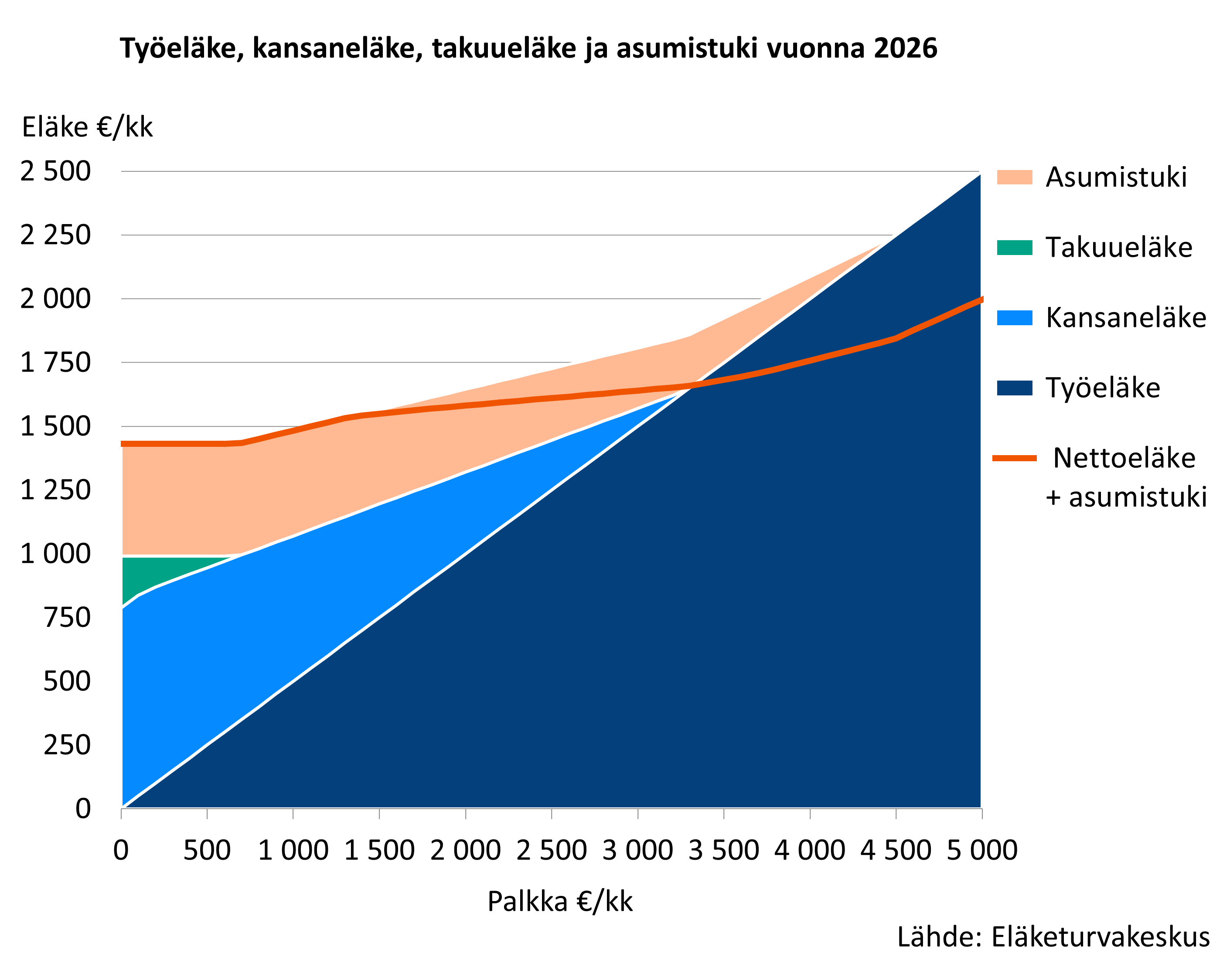 Jos työeläketurva jää vähäiseksi lyhyen työuran tai matalan ansiotason vuoksi, tai jos työeläkettä ei ole kertynyt lainkaan, kansaneläke ja takuueläke takaavat toimeentulon. Kansaneläkkeeseen ja takuueläkkeeseen oikeutettuja ovat tietyin edellytyksin kaikki Suomessa asuvat henkilöt.