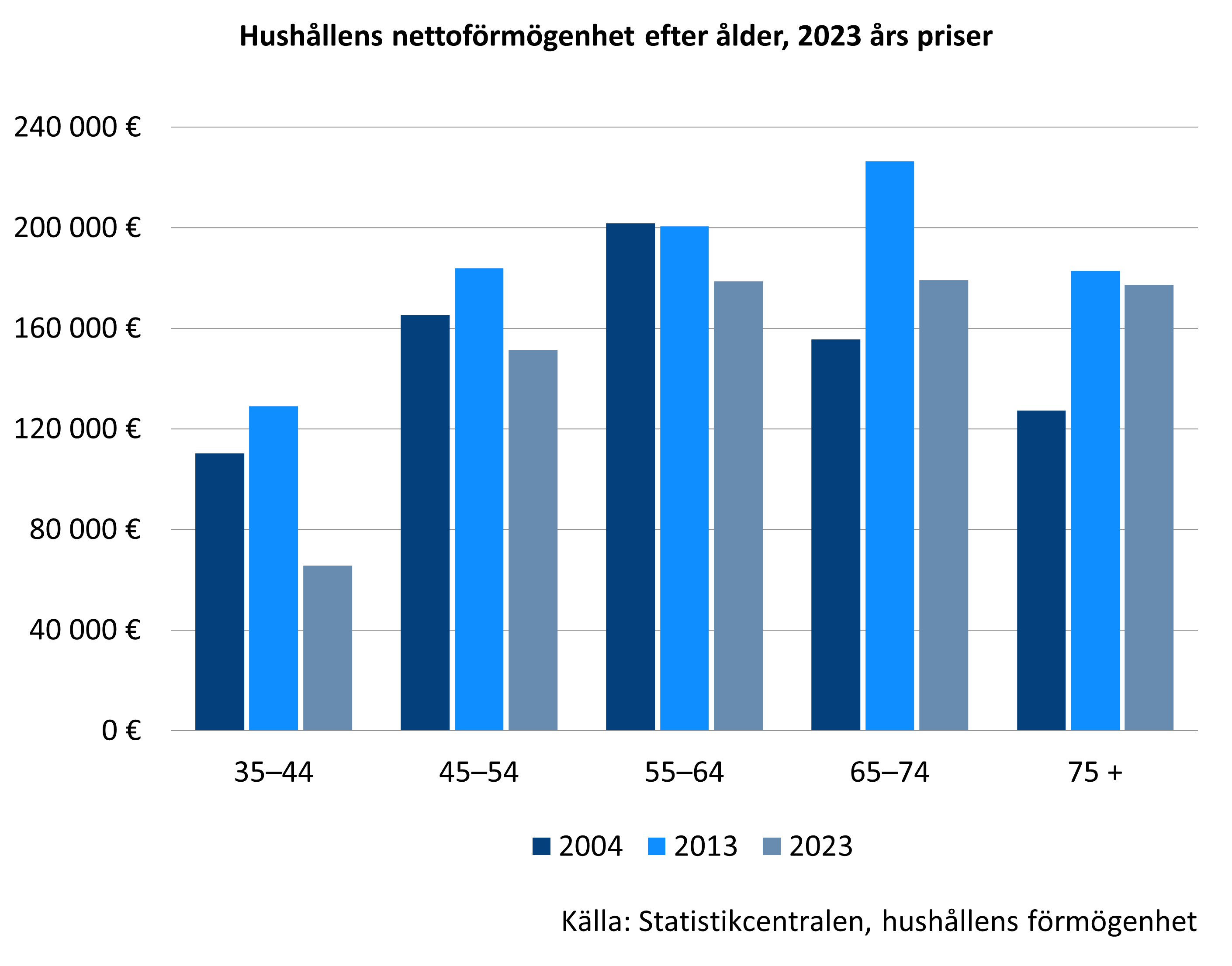 Besparingar och förmögenhet kan komplettera inkomsterna och utgöra en buffert för överraskande utgifter. Förmögenheten ökar i allmänhet med stigande ålder genom betalning av skulder och genom annat sparande. Värdet av existerande förmögenhet ökar också med tiden. Dessutom kan förmögenhet fås genom arv. Förmögenheten bland personer i pensionsåldern har ökat i synnerhet när de stora efterkrigsårskullarna nått pensionsåldern. I dagens läge är det hushållen i åldern 54+ som har den största nettoförmögenheten bland finländska hushåll.