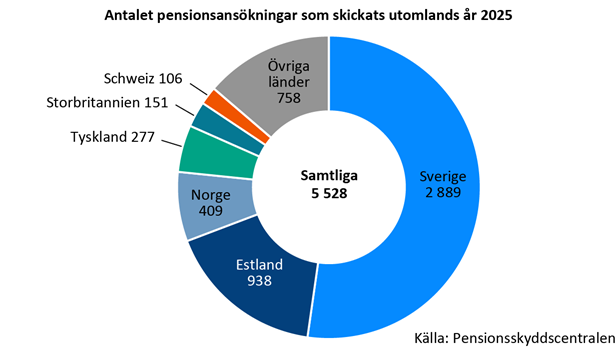 År 2025 skickades sammanlagt 5 528 pensionsansökningar till utlandet från Pensionsskyddscentralen.