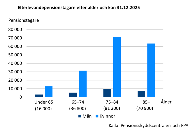 Familjepension betalades till 205 000 efterlevande makar och till 16 000 barn i Finland år 2025. Av efterlevandepensionstagarna var 179 000 kvinnor och 26 000 män.