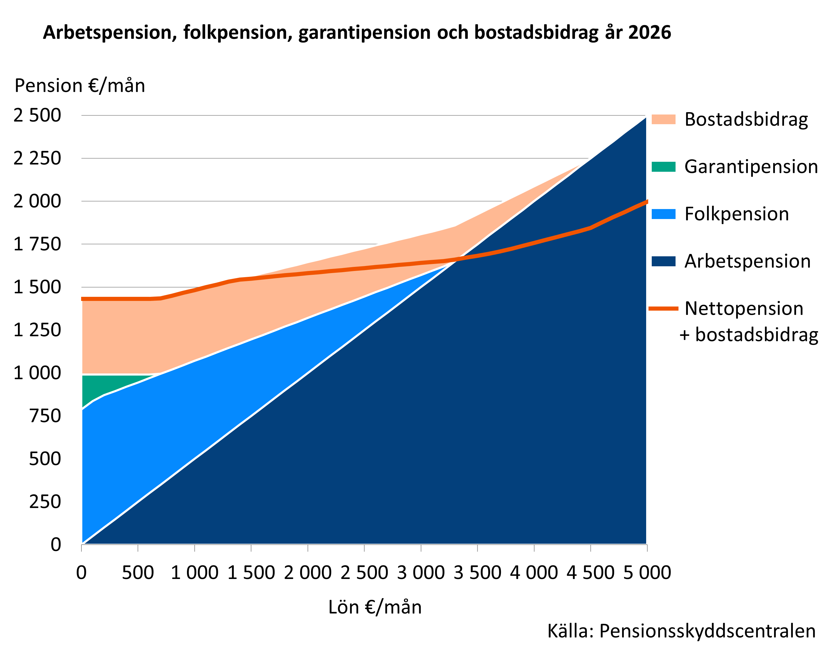 Om arbetspensionen blir lite för att yrkesbanan varit kort eller inkomsterna låga, eller om man inte alls har tjänat in arbetspension, tryggar folkpensionen och garantipensionen en minimiinkomst. Alla som är bosatta i Finland har rätt till folkpension och garantipension under vissa förutsättningar.