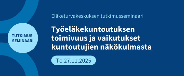 Tervetuloa asiantuntijoille suunnattuun tutkimusseminaariin torstaina 27.11.2025 klo 14‒16 Eläketurvakeskukseen Kalasatamaan (Tukkutorinkuja 5, 7. krs, Harmaja). Seminaari on pelkästään läsnätilaisuus.