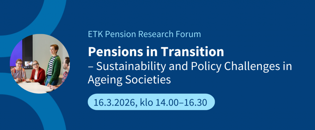 Avoin eläketutkimuksen foorumi ETK Pension Research Forum tarkastelee eläkejärjestelmiä tulonjaon näkökulmasta sekä eläkeiän nousemisen vaikutuksia. Tervetuloa webinaariin maanantaina 16.3.2026 klo 14.00–16.30. Webinaari on englanninkielinen.